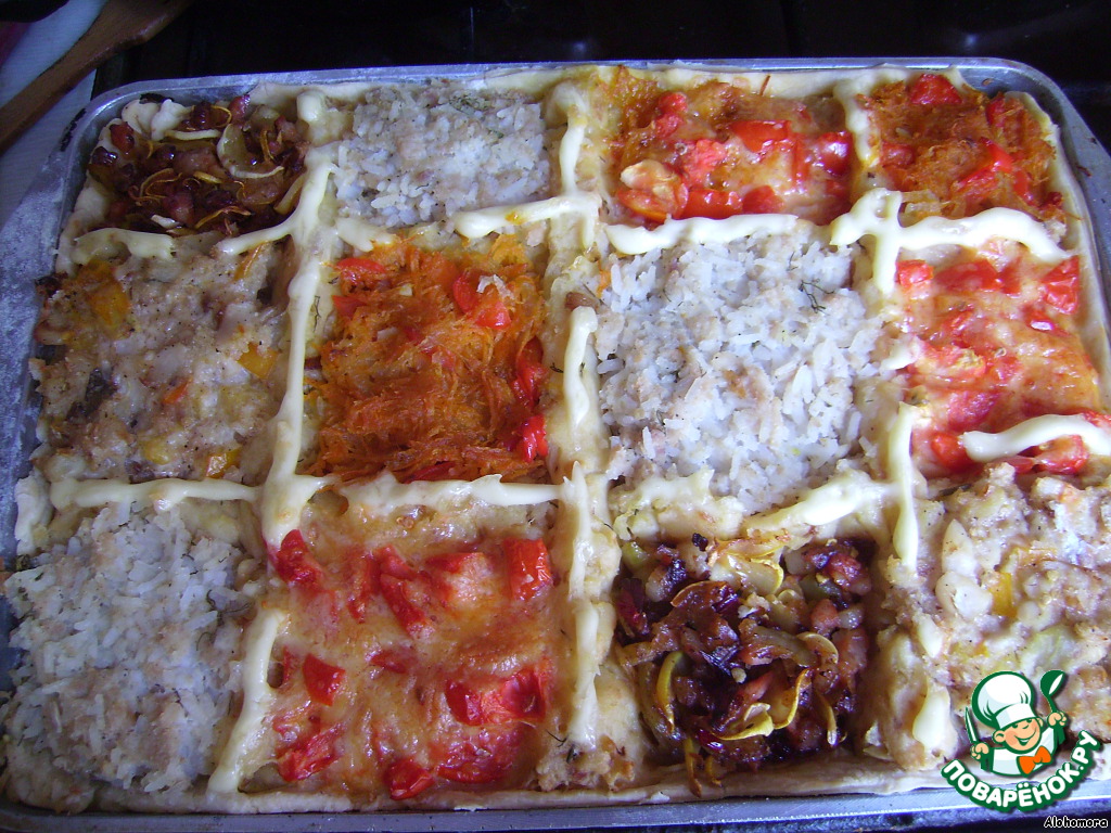 очень вкусный пирожок с начинками на любой вкус)))))) тоненькое тесто и много-много разнообразной вкуснятины внутри)))) улетает со стола моментально, т. к. хочется попробовать всего-всего))))
