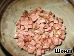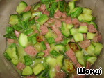 • Соединить колбасу, кабачки и яйца вместе, перемешать, посолить.