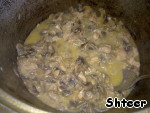 Как только курица и грибы у вас будут полностью готовы, добавить в жаровню разбухший желатин. Помешивая, добиться его полного растворения.