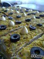 Извлеченный из противня "торт" немного смазать майонезом и посыпать измельченными фисташками.