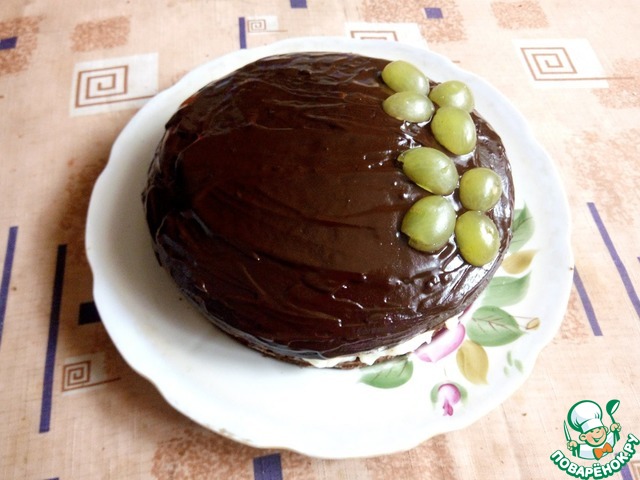 Накрываем второй половиной коржа и поливаем шоколадной глазурью.