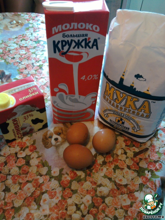 Ингредиенты для «Блины обыкновенные, или "Смешайте муку, яйца и молоко... "»: