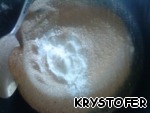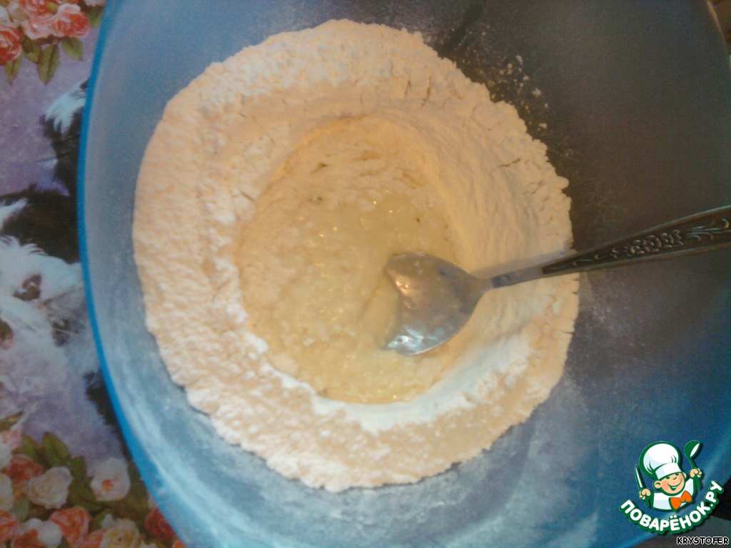 Половину муки, дрожжи, масло растворить в молоке, дать подойти.