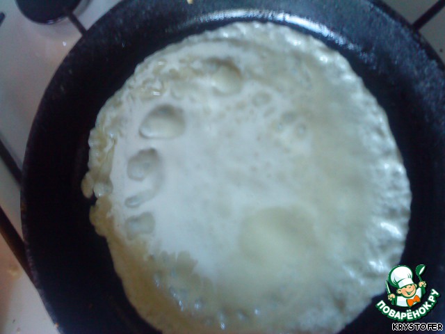 Опять намазать сковороду маслом перышком, влить тесто и т. д.