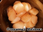 Гребешки промываем в холодной воде, обсушиваем салфеткой и складываем в миску.
