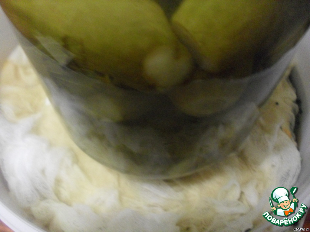 Периодически смотрим, если образовался белый налёт, то груз, марлю и крышку промываем водой и кладём снова. -