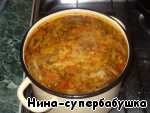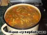 Затем добавить припущенные овощи, посолить, поперчить и варить еще около 15 минут до готовности овощей. -