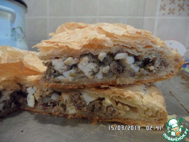PS: в оригинальном рецепте используется тесто фило; несмотря, что проживаю в чехии, его здесь не всегда найдешь - так что слоеное хорошая альтернатива.