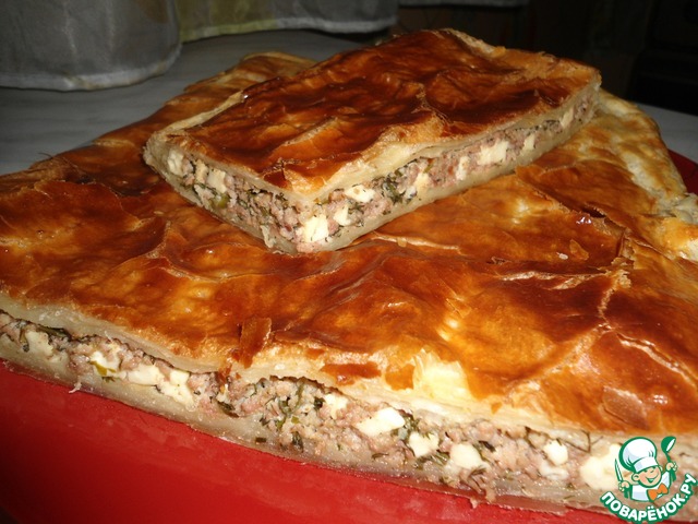 [+5]Мы делали целый противень, 1 кг фарша с репчатым луком + 250 г брынзы + 5 варёных яиц + много зелени, в т.ч. зеленого лука. Супер пирог. Только начинка рассыпается, в следующий раз пирожки с такой начинкой сделаем.