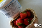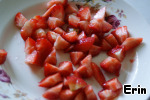 Режем на мелкие кусочки клубнику. Три самые красивые ягоды оставляем для украшения.