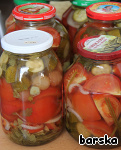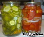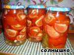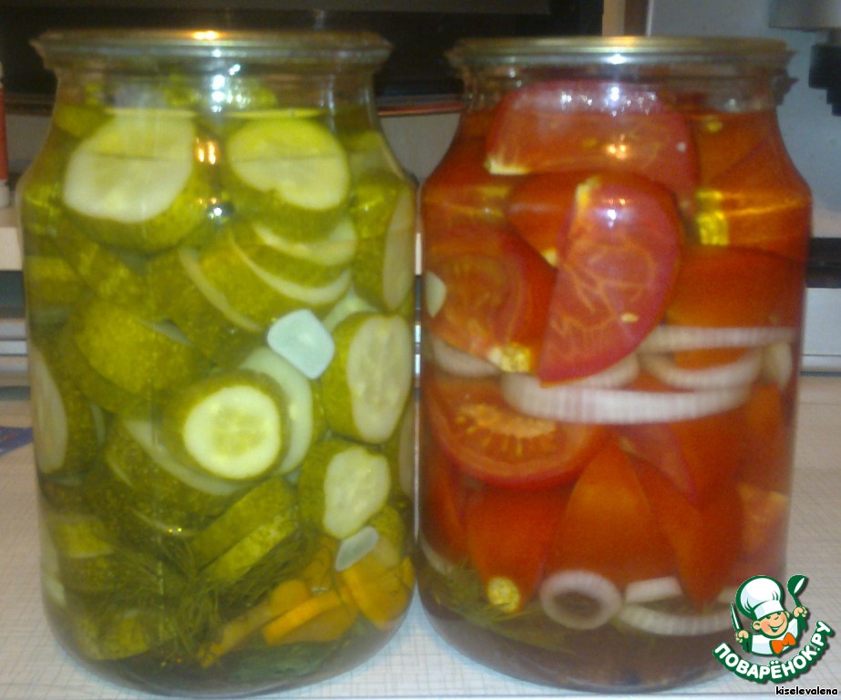 Таким же способом закрывала огурцы кружочками и помидоры дольками с луком.