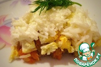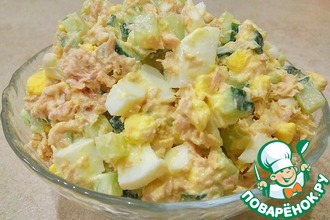 Этот салат жена привезла из Севастополя; на удивление, сколько не искал в инете по описанию/ингредиентам - такого не встречал. Салат непередаваемо вкусный и простой в готовке. Ингредиенты тут самые обычные, но все дело в предварительной готовке рыбы)))