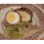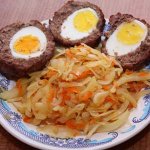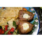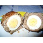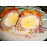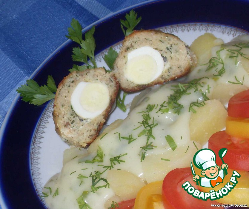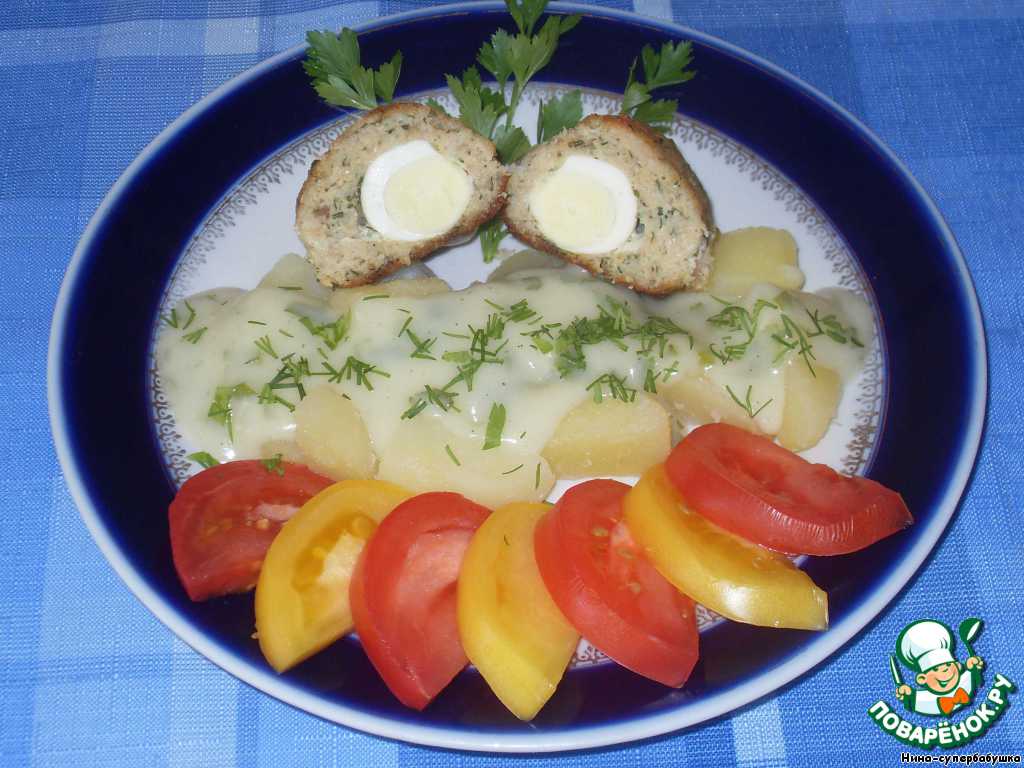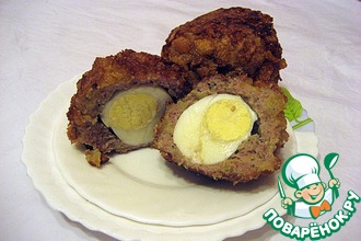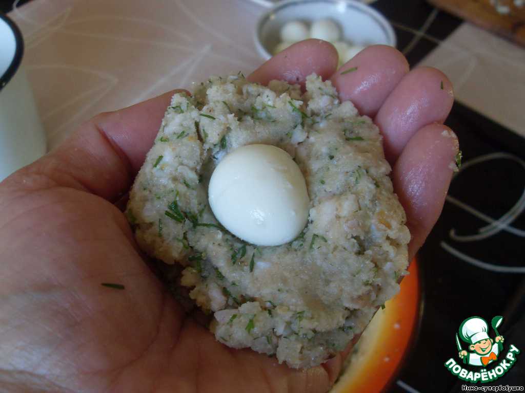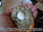 Закатать яйца в фарш, придавая форму овальной зразы.
