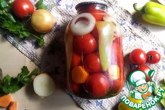 ссылочка у меня в голове))) в плане рецепта я имела в виду залить кипятком помидоры, сложенные в 3-литровую банку , дать постоять минут 30, потом воду слить, закипятить, в помидоры соль, сахар, уксус, и залить кипящей водой, закатать и укутать. а сколько специй, я поняла, что вы на свой вкус можете добавить. у меня всего по 2ст.ложки