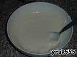 Приготовить крем: смешать творог и 0.5 стакана сахара до однородной массы.