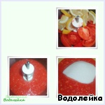 Дальше помидоры нарезать и вместе с лимоном (предварительно лимон обдать кипятком)перекрутить на мясорубке или измельчить в блендере.