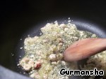 • Итак, для начала растолчем в ступке лесной орех, хлебный мякиш, чеснок и петрушку. Поджарим все это на масле. Буквально 2-3 минуты, чтобы хлеб не сгорел. Уберем отдельно.