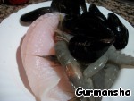 • А также приготовим рыбку, мидии и креветки. Я брала в основном пангасиус, а из морепродуктов и моллюсков можно использовать и другие.