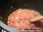 • Наши помидорчики уже почти готовы, разварились. Добавляем туда шафран и красный острый перец.