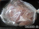 Затем разрезаем пакет, увеличиваем температуру до 220-230 градусов и запекаем до золотистой корочки, поливая мясным соком, примерно 10 минут.