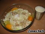 Добавить 3 яйца, соль, перец и манку, все смешать и оставить на 1 час.