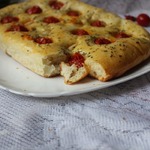 Неприлично вкусная... На днях вялила помидоры и вспомнила о картофельной фокачче. Так как в этом рецепте нужны именно печеные (приготовление такое же как и вяленых, но время запекания где-то 1 час) или свежие помидоры, потому что вяленые сгорят. Думаю, что и с вялеными можно, но выложить их минут за 5 до готовности фокаччи.