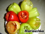 Пока у нас готовится фарш, подготовим перчики. Помоем и извлечем плодоножку.