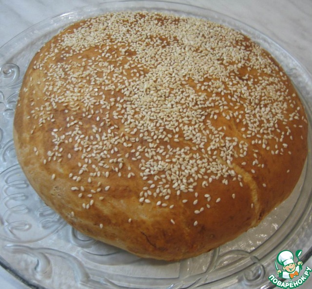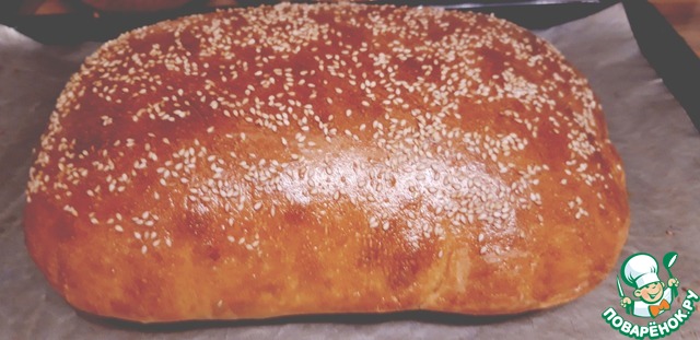 Хлеб аккуратно смазать остатками от яйца, по желанию присыпать маком или кунжутом (я всегда в этом рецепте использую кунжут), аккуратно, стараясь не трясти форму, чтобы хлеб не осел, хотя как по мне, то бояться нечего (ничего подобного ни разу не случилось), поставить в еще теплую духовку.