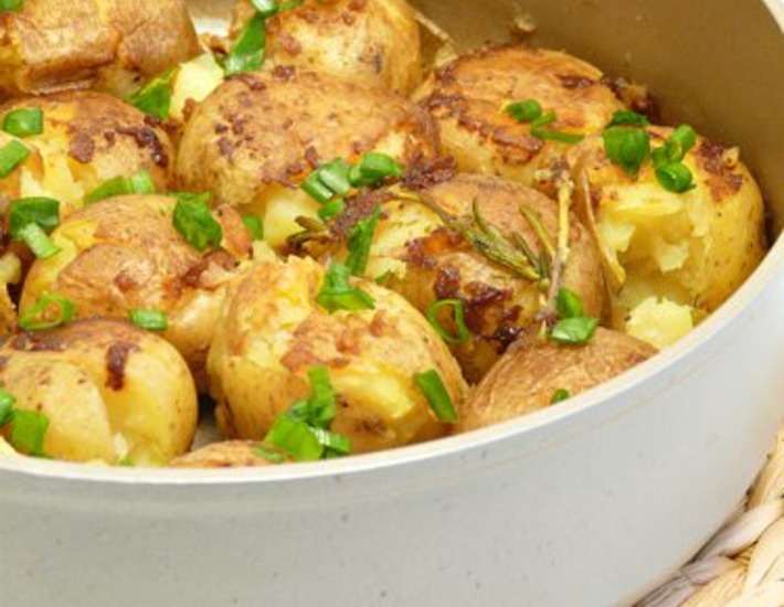 Pommes de terre fondantes. Ещe один рецепт в копилку французских блюд... Рецепт не на конкурс, поэтому не ищите на фотографии французского антуража))) Pommes de terre fondantes (тающий картофель) – старинный французский рецепт. Идея этого рецепта: картофель отваривается в бульоне до готовности, затем слегка придавливается до появления трещины – открывшаяся картофельная мякоть впитывает в себя бульон, что делает картофель насыщенным по вкусу и мягким – «тающим» по текстуре. После испарения жидкости картофель продолжает жариться, до образования золотистой корочки. По вкусу он напоминает картофель, запечeнный рядом с мясом, но на его приготовление затрачивается значительно меньше времени. Рецепт с сайта cooking with Ayn. Этот картофель хорошо подавать с любым запечeнным мясом или просто со свежим зелeным салатом