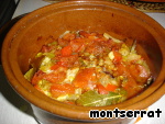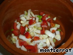 • На дно глиняной кастрюли наливаем ложку масла, укладываем слой нарезанных овощей,