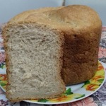 Это один из первых рецептов хлеба, который я готовила. Как дебютанту мне было важно, чтобы хлеб готовился легко и без премудростей. Моя свекровь презентовала мне свою старую книгу Дарьи Цвек 1970 года, по которой она собиралась учиться готовить, вступая в семейную жизнь, но так и не воспользовалась, так как ей рецепты показались "дорогими" и, когда я пролистывала книгу в первый раз, рецепт именно этого хлебушка сразу бросился мне в глаза. Продукты все были в наличии и рецепт был сразу опробован, и не зря. Периодически я пеку и этот хлебушек, чередуя с молочным и горчичным. Ещe важно и то, что хлеб получился с первого раза, а я была ещe "чайником" в этом вопросе.