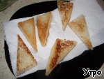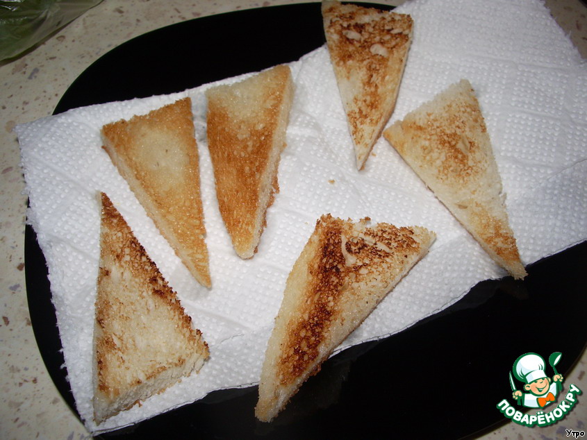 Когда блюдо готово, выкладываем в красивую посуду, украшаем тостами и наслаждаемся! Вкус обалденный! Соус сногсшибательный. Макаем тост в хлеб иииииии......... Мне даже цыпленка не надо было... вся сила в соусе!