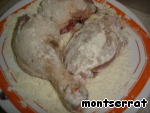 Тушку цыпленка режем на кусочки, обваливаем в муке,