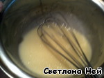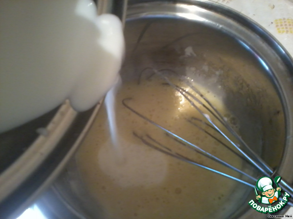 • Вскипятите молоко и влейте его в желтки. Не прекращайте взбивать.