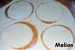 • После приготовления начинки раскатать тонким пластом тесто и вырезать круги (можно произвольного диаметра, но лучше всего около 12-13 см).