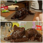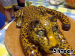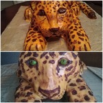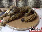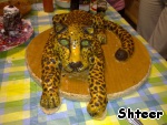 Все началось с того, что как-то зимой на одном из кулинарных сайтов я увидел очень дивный торт – это был медовик, внешне очень похожий на тигра. Назывался он, если не ошибаюсь, «Белый тигр»… Мне очень понравилась идея воплощения животного, и я решил: «Чем я хуже? Неужели у меня не получится?» В общем, я загорелся идеей, оставалось лишь дождаться подходящего повода и свободного времени… Поводом стал мой прошедший день рождения, который выпадает на вторую середину августа – время летних каникул в нашем университете… Так что времени было «хоть отбавляй!» Единственное, мне не хотелось полностью копировать торт как внешне, так и внутренне… Опять же, день рождения – большой семейный праздник с кучей гостей… для такого случая требуется «тортик» помасштабнее… В итоге у меня получился вот такой вот Леопард! Хочу заметить, что сам медовый торт, приготовленный по этому рецепту, очень вкусен, и тем кулинарам, которые вряд ли возьмутся за кропотливую работу – изготовление леопарда, советую взять на заметку рецепт самого торта. Поверьте! Он получается просто великолепным! Тем же, кто рискнет изготовить «киску» - Вас ждет долгая и трудная работа… НО результат! Результат повергнет всех в шок (в хорошем смысле)! Наличие такого торта на праздничном столе оставит память о прошедшем дне на всю оставшуюся жизнь! Хочу заметить, что я никогда не ходил в художественную школу, не рисовал и не занимался лепкой. … Так что прошу прощения, если мне где-то не удалось передать анатомические особенности этой особи семейства кошачьих…