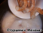Если креветки замороженные, то предварительно размораживаем их. Очищаем от панциря всю креветку, кроме кончика хвоста.