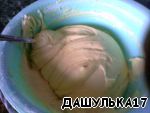 Муку просеять и смешать с разрыхлителем, добавить в яично-масляную смесь. Хорошо размешать. Получится довольно густое тесто.
