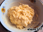 Сыр натереть на крупной тёрке, добавить муку и взбитые желтки, хорошо перемешать.