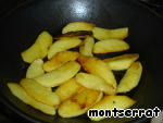 Тем временем чистим и нарезаем ломтиками яблоки, обжариваем их на оливковом масле, добавляем чуть сахара и соли.