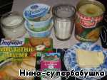 Вот такие продукты нам понадобятся. Сливочный сыр я взяла в коробочках, по 140 г каждая ("Violette", нежный творожный сыр сливочный, фирма Карат. Подошел идеально) - всего 280 г, поэтому желатина взяла чуть побольше, чем по рецепту.