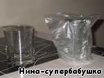 6 низких стаканов застелить пищевой пленкой! Я не знаю, как это можно сделать! Как я ни пыталась... ничего у меня не получилось! Пленка сминается, прилипает... Намучилась... плюнула и сделала по-своему: взяла маленькие полиэтиленовые пакеты. Широкий стакан. Граненый стакан.