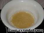 Желатин залить 2 ст. л. воды. Когда набухнет, влить ананасовый сироп и перемешать.