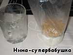 Вставить граненый стакан вместе с пакетом в широкий стакан. Концы пакета отогнуть вниз. Граненый стакан осторожно вынуть.