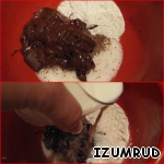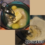 Во взбитый маргарин добавляем поочерёдно муку и банановое пюре, хорошо взбивая