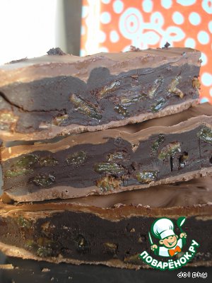 Готовый десерт достаньте из холодильника и оставьте при комнатной температуре на 5-10 минут. Затем нарежьте на 18 полосок и подавайте.