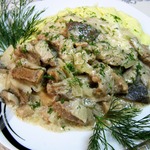 Вкусное, быстрое, простое в приготовлении блюдо! У меня свинина и вешенки. Нежное мясо, сочные грибы, нежный сливочный соус, насыщенный вкус, семье понравилось! Подавала с картофельным пюре. Большое спасибо за рецепт!