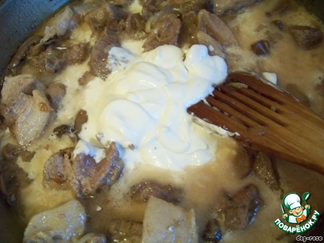 Делала почти все по рецепту. Мясо у меня было говядина и свинина. Поэтому тушила дольше. Затем я решила, что мне слишком муторно отливать часть подливы. Я сделала так : смешала сливки с приправами и мукой и влила в тушеное мясо (сметану решила не добавлять) минут за 20 до окончания. Получилось очень вкусно и сытно. Всё на своём месте. Просто и вкусно. Спасибо автору за рецепт!