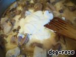 • Добавляем сливки и сметану, перемешиваем.