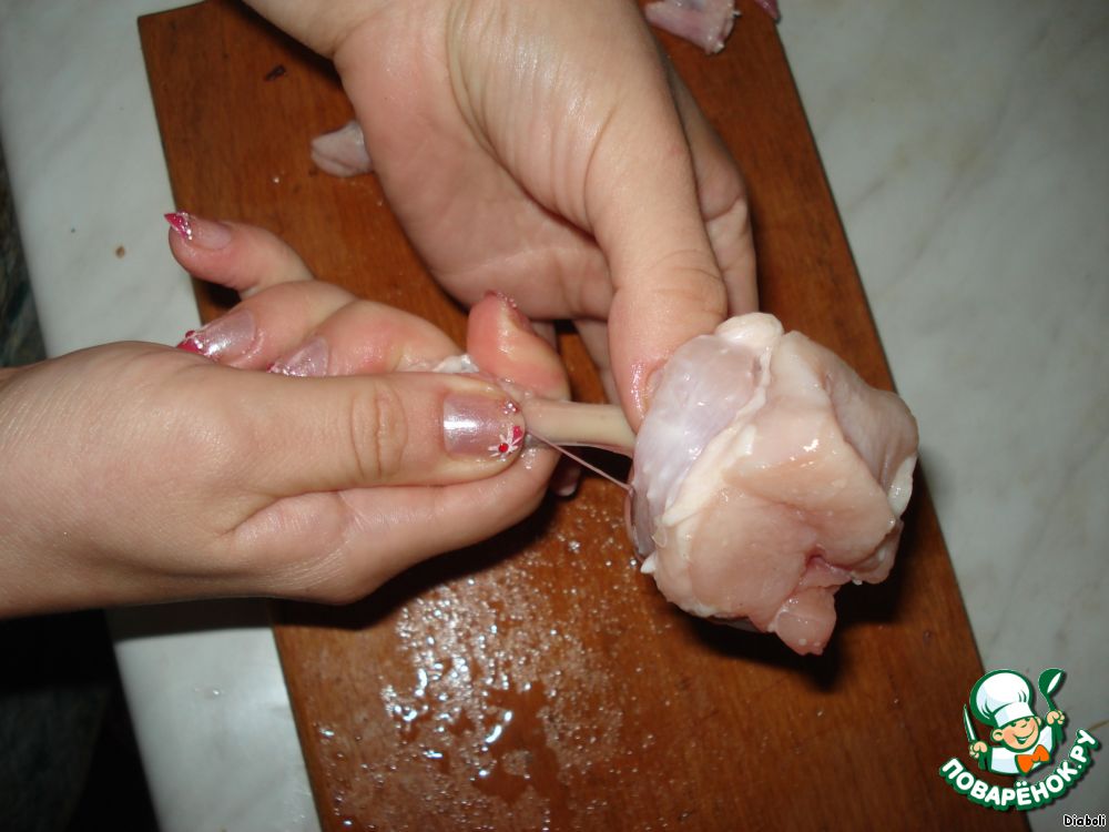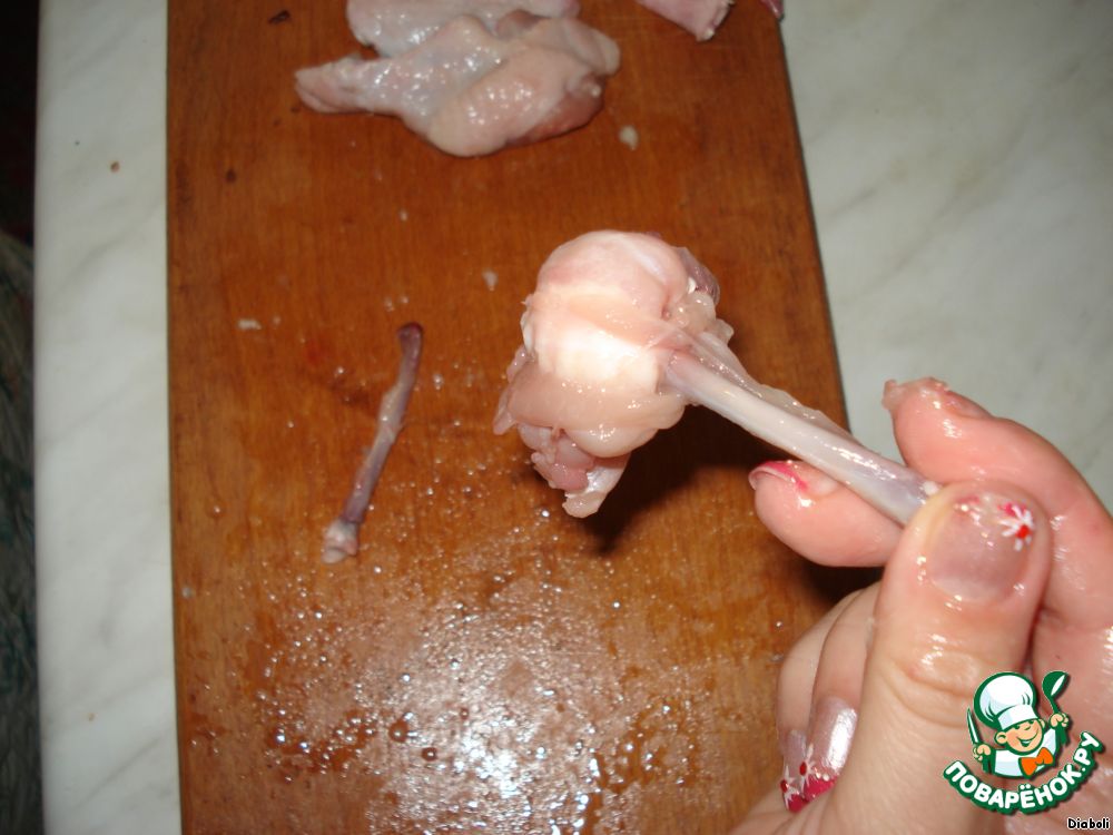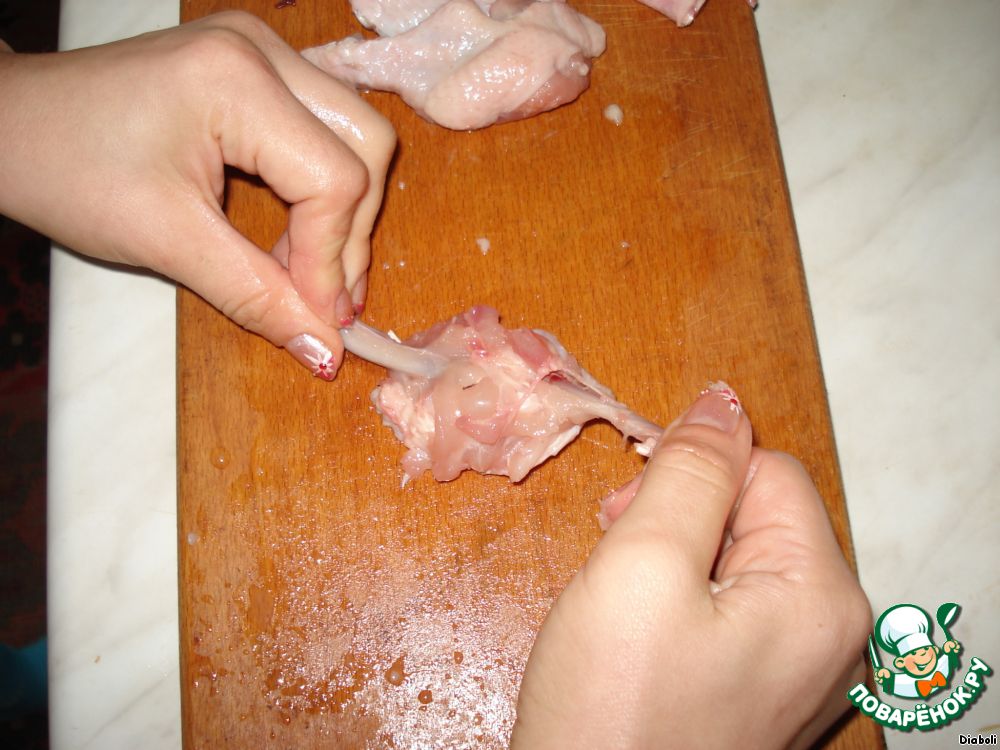 Так проделываем с каждой частью. В меньших частях крыла две косточки, потому нужно также удалить косточку, которая поменьше.